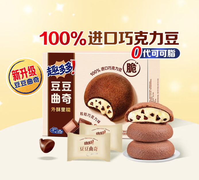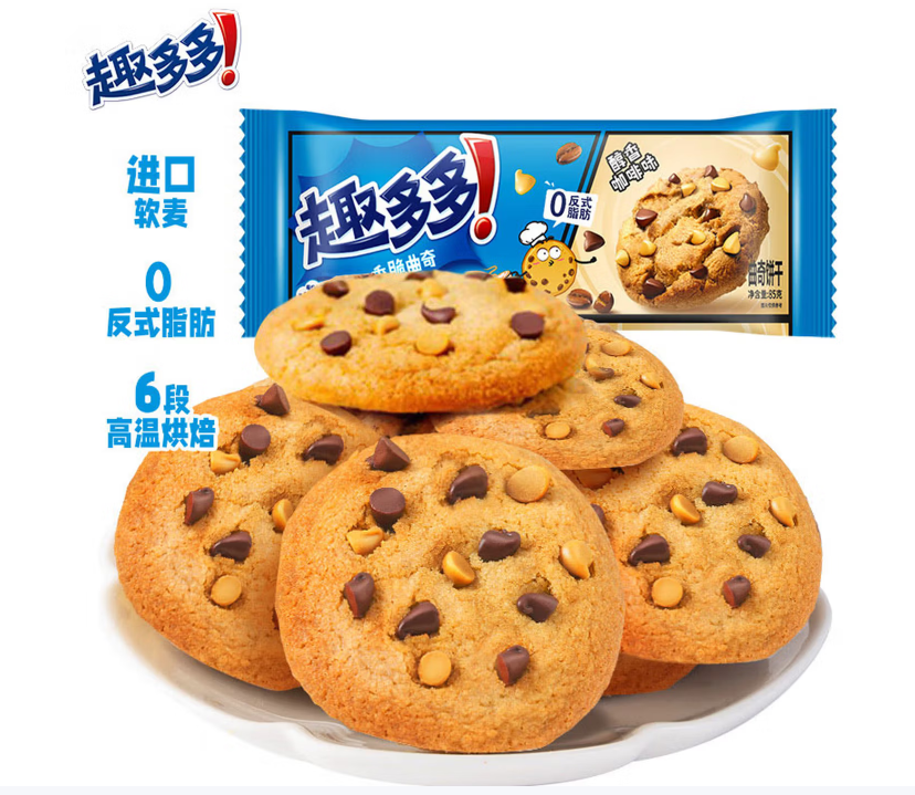 趣多多大块巧克力味曲奇饼干脏脏黑巧克力味共144g 休闲零食早餐下午茶