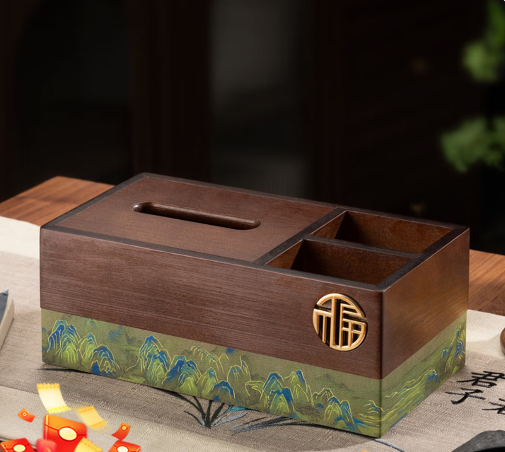 岚媛家用纸巾盒客厅高档中式实木多功能遥控器餐巾纸茶几收纳抽纸盒