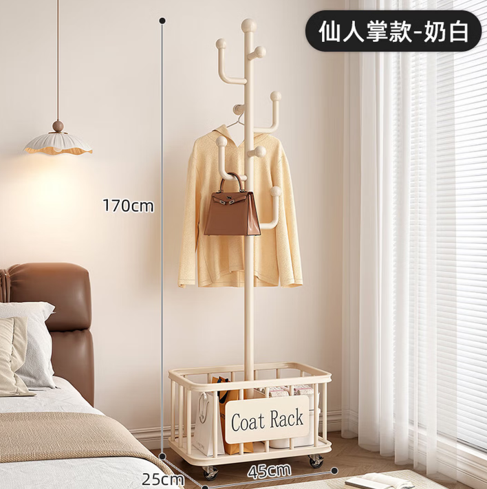 米聆卧室衣帽架一体落地可移动简易组装奶油风挂衣架极窄户型不占空间