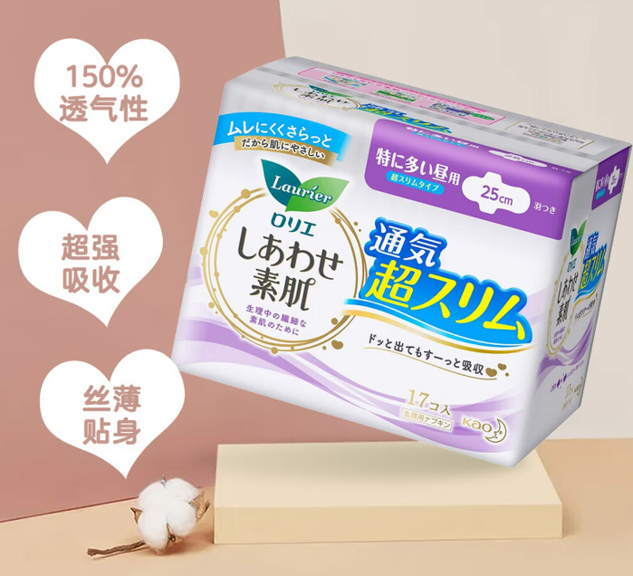 花王卫生巾日用素肌F系列进口姨妈巾25cm*17片日本绵柔超薄
